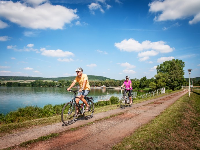 Von Erfurt aus gelangen Sie über Schellroda, dem Radweg ab Klettbach folgend nach Nauendorf und schließlich zur Avenida-Therme am Stausee Hohenfelden.