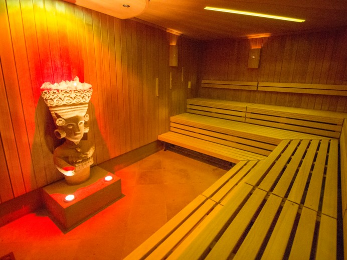 Im sogenannten "Bad der Sinne" herrscht mit rund 60°C und etwa 50% Luftfeuchtigkeit ein besonders schonendes Klima zum entspannen und relaxen. Die Lichttherapie mit unterschiedlichen Spektralfarben wird zu Lichtblicken und sorgt für eine bessere Stimmung.